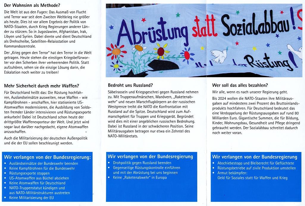 *Sonnabend, 8. Oktober 2016, 12 Uhr Berlin-Alexanderplatz / Otto-Braun-Straße: Friedensdemonstration Die Waffen nieder!!! - Kooperation statt NATO-Konfrontation, Abrüstung statt Sozialabbau