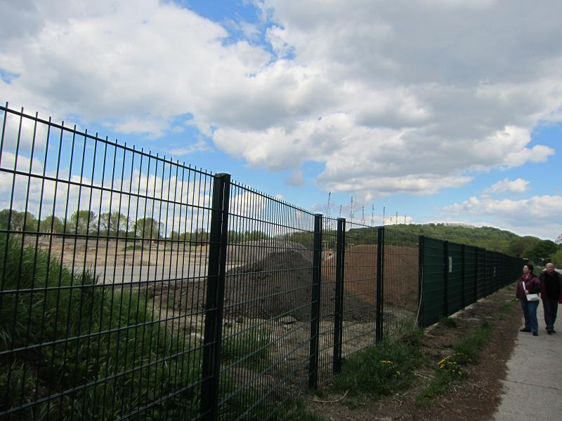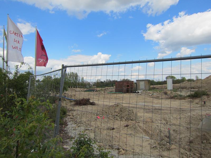 Hübsch sind die Gärten der Welt, am Blumberger Damm durch einen Bauzaun vor Betreten ohne Eintrittskarte gesichert |