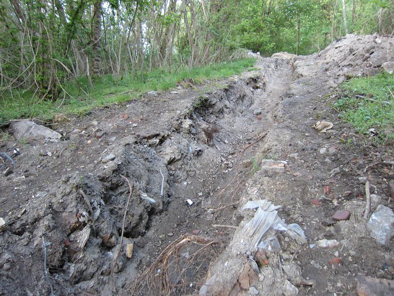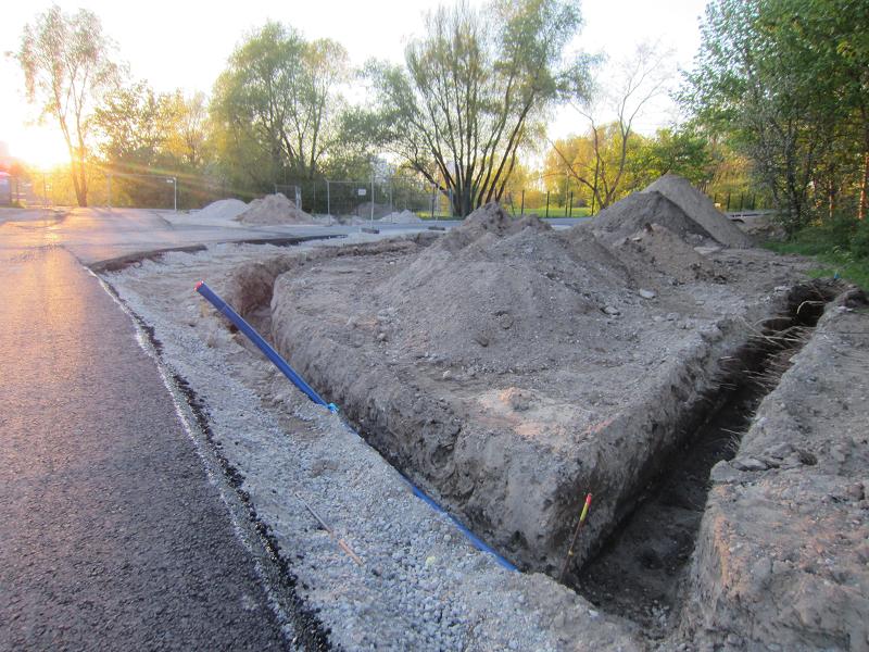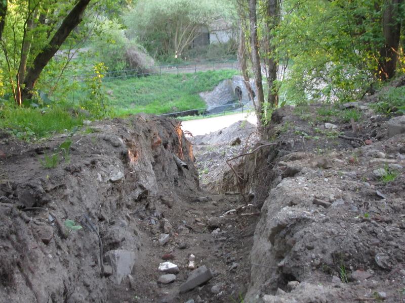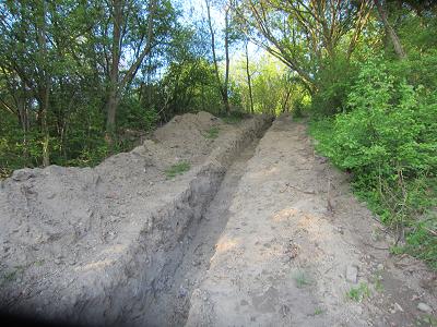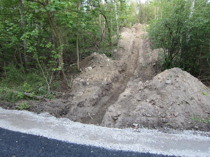 Auch am Fuße des Kienbergs sind Gräben für Versorgungsleitungen ausgehoben |