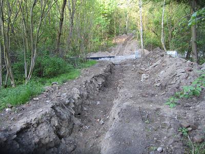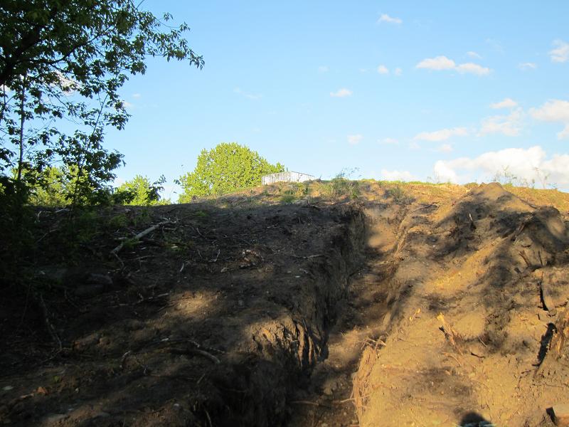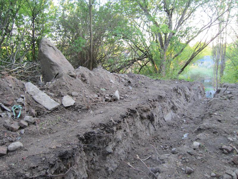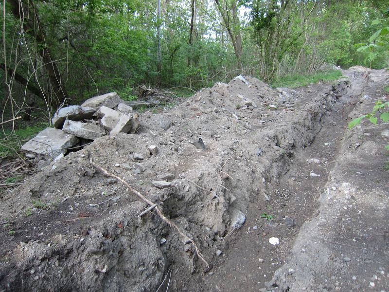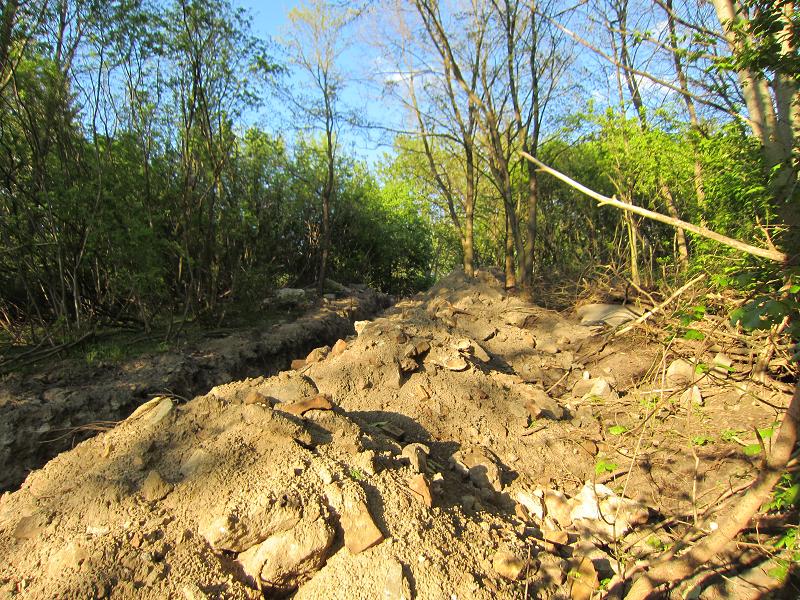 Kleine Felsen lagern neben dem ausgeschachteten Graben |