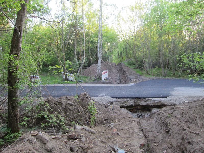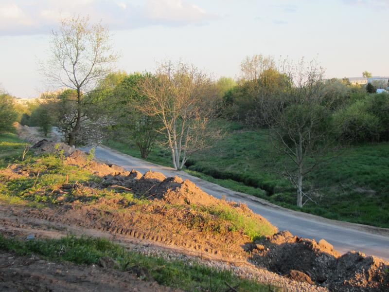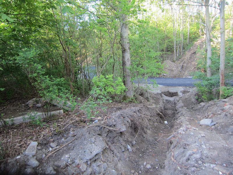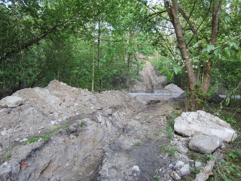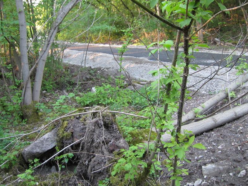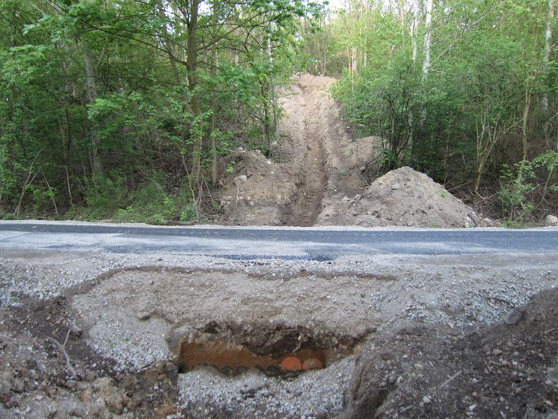 Als ob die Verbreiterung der Straße nicht genug Naturschaden anrichtet, wird auch noch neben der Straße die Natur verwüstet |