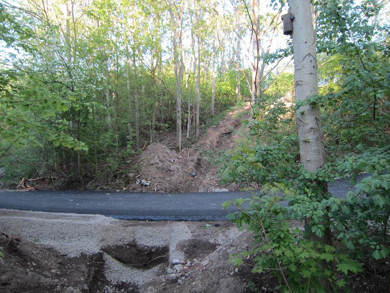 Der ehemals unversiegelte, rollstuhlfreundliche Weg auf den Kienberg ist nun stark verbreitert und geteert. Breite und befestigte Wege sind für die Menschen Frustfaktoren. Kommen nun weniger Besucher zur IGA Berlin 2017? |
