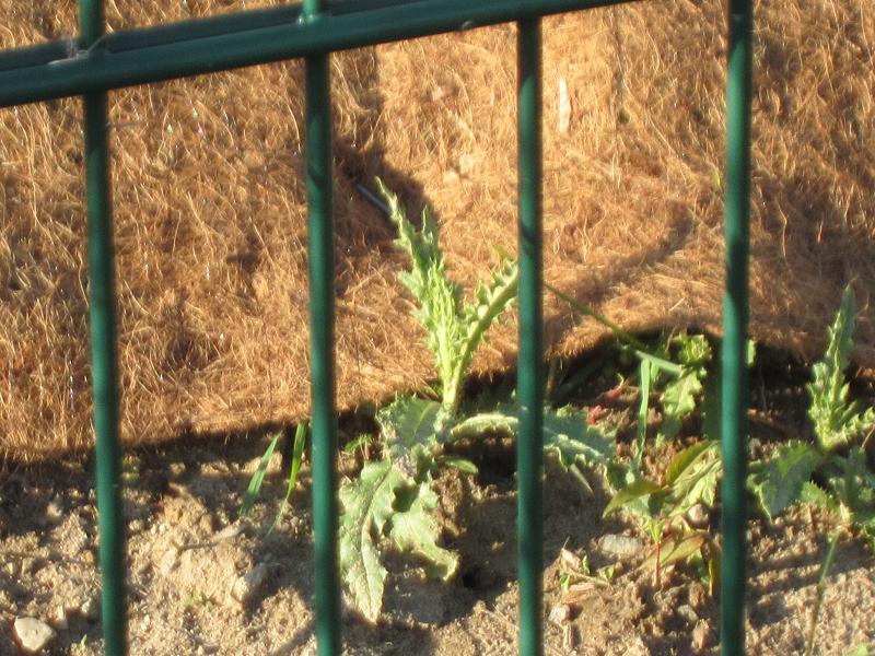 Vorwitzig lugen aus ökologischer Sicht wertvollste Disteln unter der Abdeckung hervor |