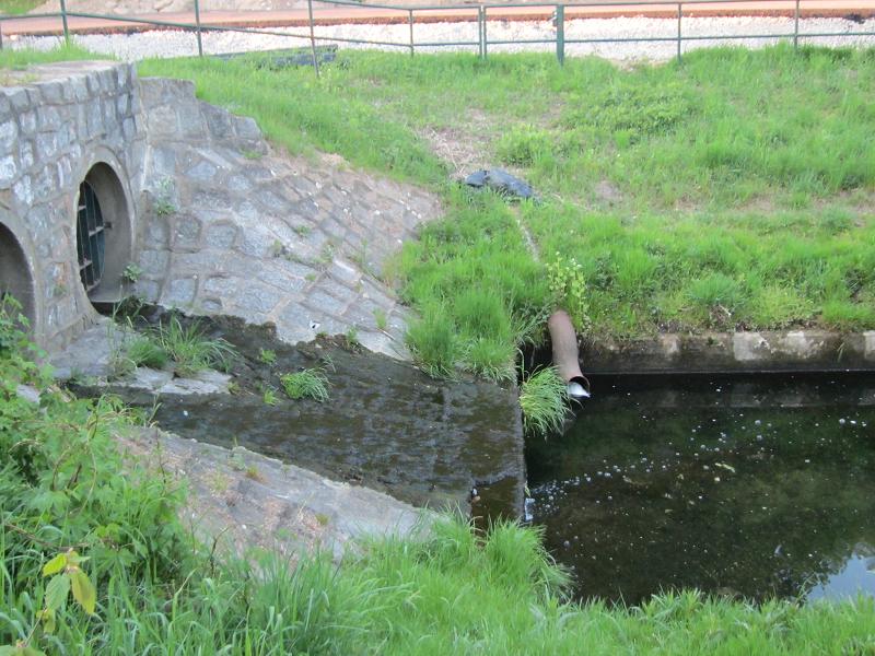 Der Biesdorf-Marzahner-Grenzgraben ist durch die Gärten der Welt durch Röhren geleitet worden. Hier, wo diese austreten, soll der IGA-Campus entstehen, wo Kids u.a. kochen sollen |