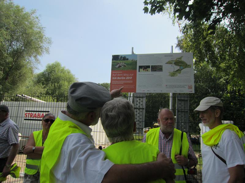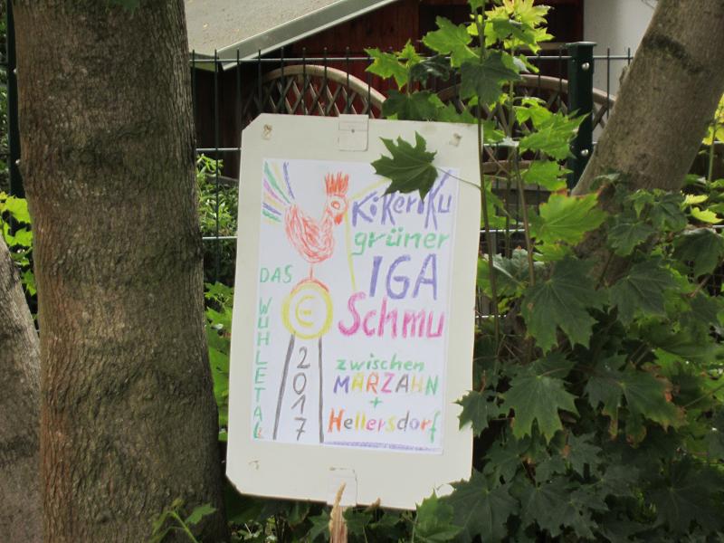 Vor der Absperrung gibt es eine kleine Kunstausstellung der Bürgerinitiative Kienberg-Wuhletal Kikeriku! - Grüner IGA 2017-Schmu! Das Wuhletal zwischen Marzahn und Hellersdorf [neben den Gärten der Welt] |