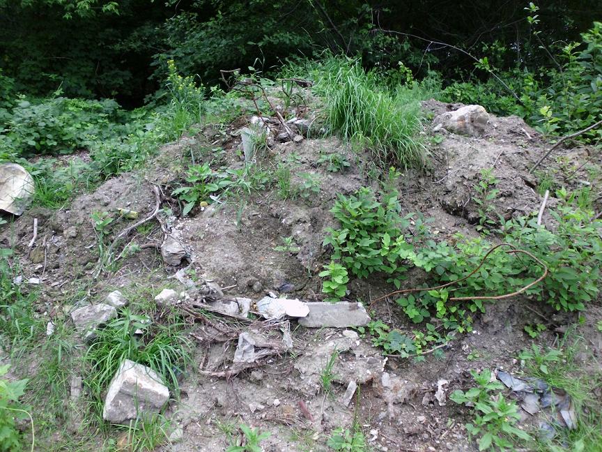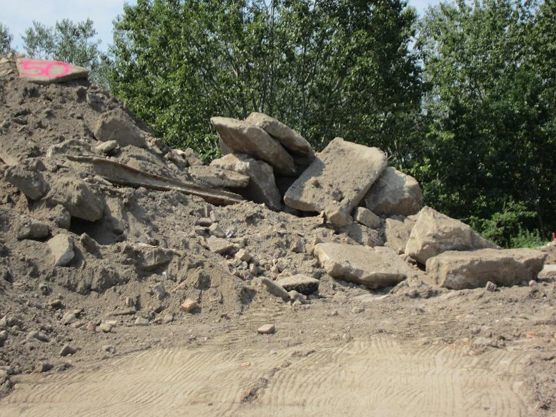Die Zahlen an den Schuttbergen („49”, „50”), die dem Kienberg entnommen werden, dienen der Beprobung. Diese werden klassifiziert und bei der entsprechenden Annahmestelle bei der Abfuhr abgegeben.