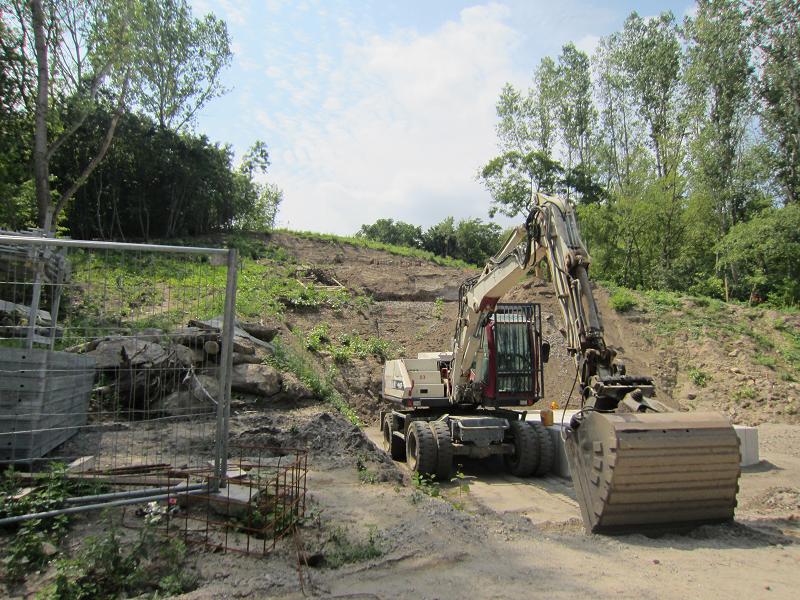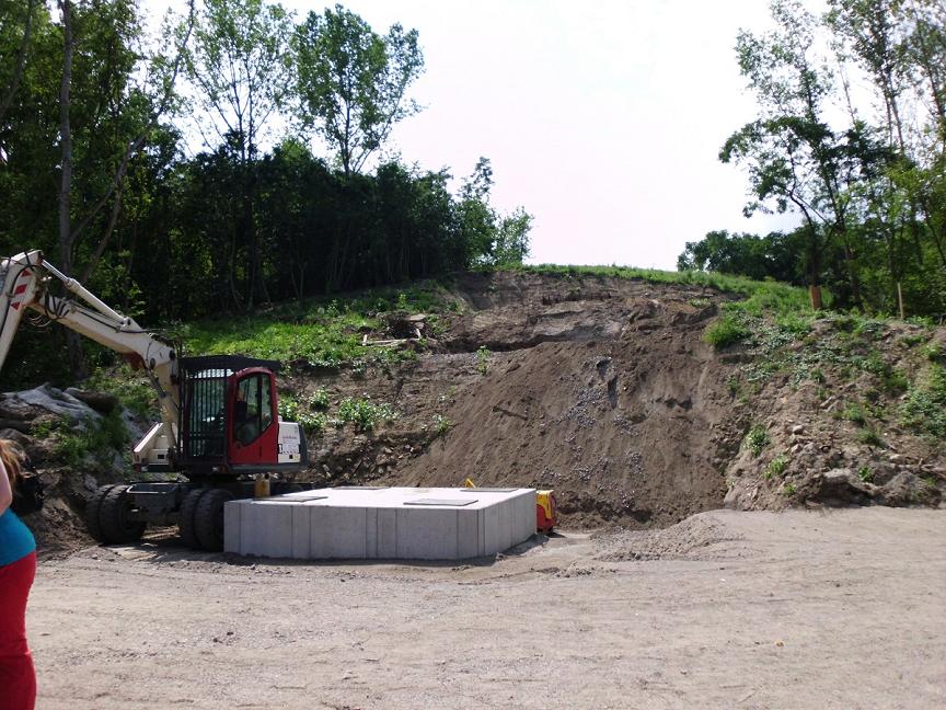 In den Schuttberg (Kienberg) mussten Leitungen verlegt werden. Wasserleitungen: 1,20 Meter tief. Außerdem Stromleitungen. Die Mediaerschließung (Strom, Wasser, Telefon usw.) machen 10 Prozent der Kosten aus.