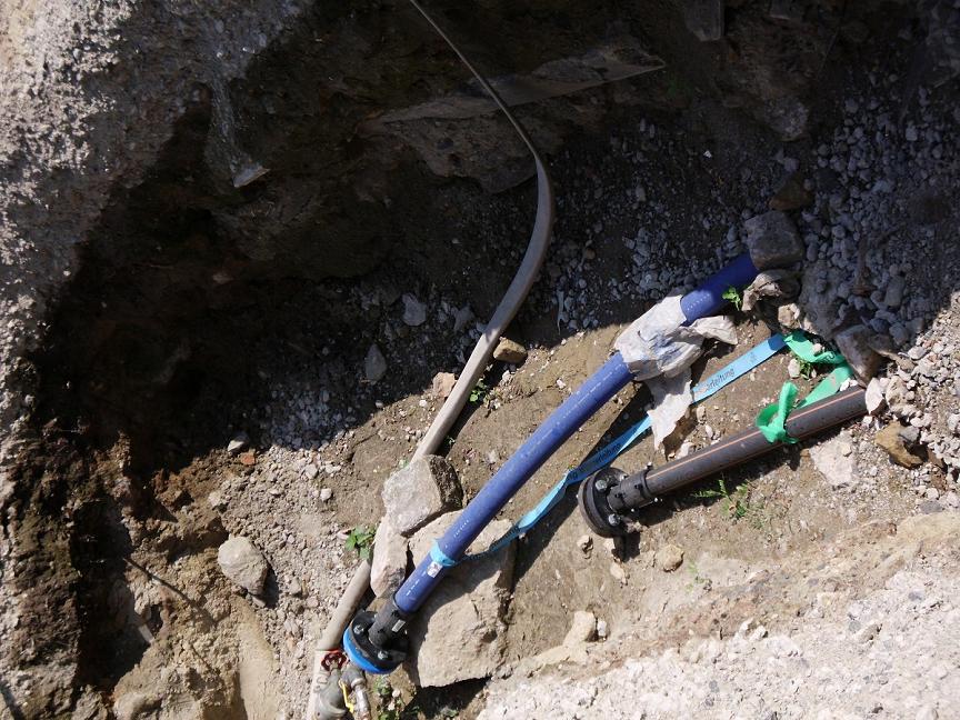 Am Südhang wurden nur Stromleitungen verlegt, an der Ostseite Wasser- und Abwasserleitungen. |