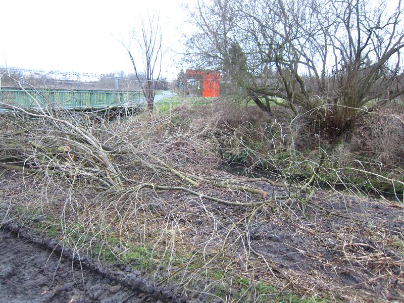 Oh Kienberg! Oh Biesdorf-Marzahner-Grenzgraben! Wie habt Ihr Euch verändert! Das ganze lebendige Grün hat sich rar gemacht und ist einer fast absoluten Leere gewichen! Das streng geschützte Schilf und Röhricht - Wo ist es hin? Nicht einmal ein einziges Hälmchen durfte stehen bleiben! Auf beiden Seiten des Ufers sind auch die Wildpflanzen und z.B. Weiden verschwunden. Niemand zweifelt daran, dass dies heimische und naturschutzfachlich wertvolle Pflanzen und Gehölze sind! Ich bin erschüttert! Ich bin entsetzt! Wie konnte man so etwas Frevelhaftes tun? - Nein, das hat die IGA GmbH nicht veranlasst. Dafür zeichnet das Wassermanagement, also eine Wasserbehörde des Senats, verantwortlich.