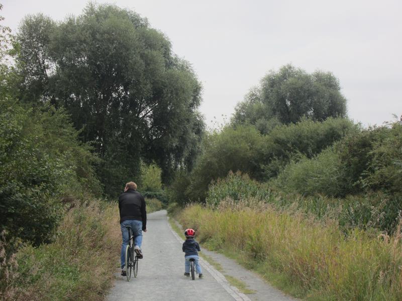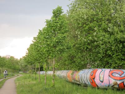 Diesen Weg zwischen Kienberg-Südhang und Biesdorf-Marzahner-Grenzgraben, der anfängt, seinen natuerlichen Verlauf zu finden und meandriert, dürfen nur noch Baumaschinen und Bauleute benutzen; die Erholung suchende Bevölkerung ist ausgeschlossen. - Alles wird schön! Quicklebendige Naturkinder werden massakriert und durch hübsche Puppen ersetzt. DIESE sollen bestaunt werden!