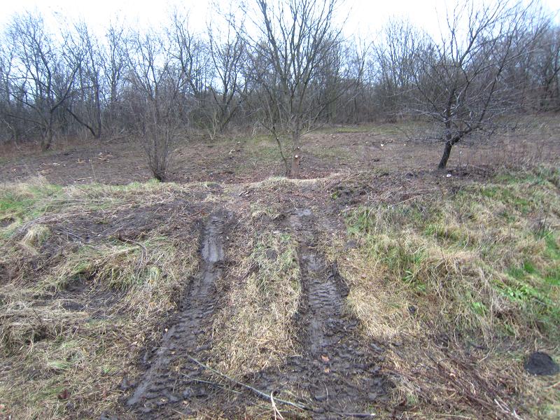 Kienberg-Südhang, wo zur IGA 2017 Berlin die Kienberg-Hänge mit Streuobstwiese und Weinanbau entstehen sollen. - Wo sind die Obstbäume? Reifenspuren statt Obstbäume-
