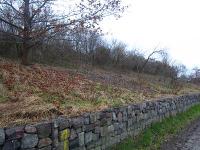 In dieser Ecke darf man nicht ein gestaltetes Gartenareal erwarten, sondern eine Mondlandschaft mit Erde, Lehm und Steinen. Und einem Wall aus Erde.