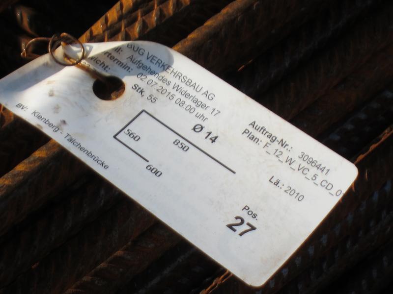 Das Schild suggeriert, dass das Material für die Tälchenbrücke, die jenseits des Kienbergs von dort in die Gärten der Welt führen soll |