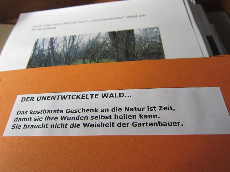 Der "unentwickelte Wald"... Das kostbarste Geschenk an die Natur ist Zeit, damit sie ihre Wunden selbst heilen kann. Sie braucht nicht die Weisheit der Gartenbauer. |