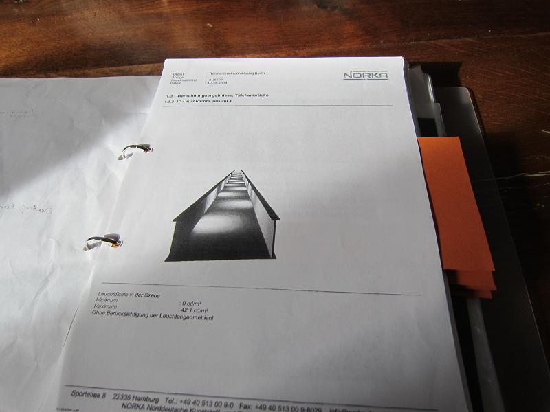 Beleuchtung von Tälchenbrücke und Wuhlesteg Projektbeschreibung: Emin festgelegt auf 8 lux Eingesetzte Leuchte: LUZERN 38, 14W, transopal, breit strahlend Tälchenbrücke: Leuchtenabstand 10,0m, LPH: circa 1,20m / Bewertungsfläche: 2,2 m breit Wuhlesteg: Leuchtenabstand 8,0m, LPH: circa 1,2om / Bewertungsfläche: 3,2 m breit |