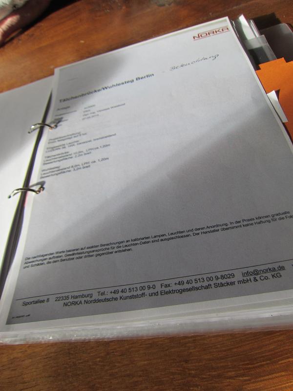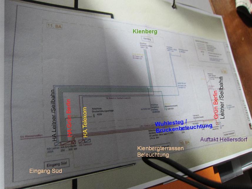 elektrische Versorgung, z.B. Beleuchtung für den Wuhlesteg und u.a. Beleuchtung der Kienberg-Terrassen mit 25 Leuchten: Selux Saturn 3 (7DW), LPA circa 28 Meter |