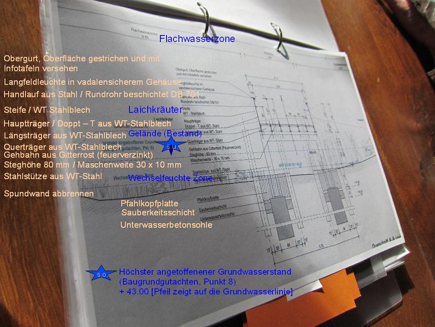 Querschnitt durch den Steg (die Brücke) übers Wuhletal |