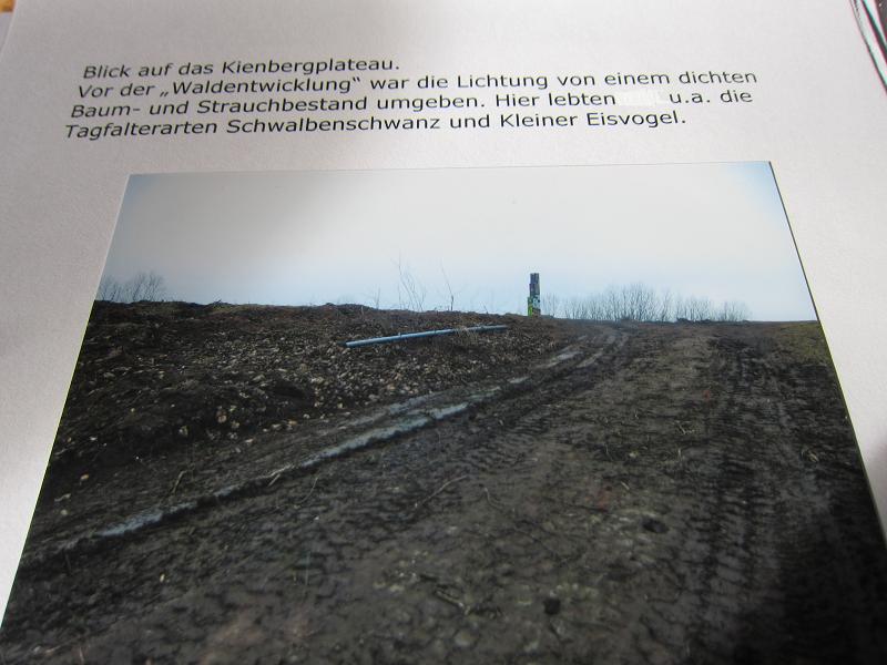 Blick auf das Kienbergplateau Vor der "Waldentwicklung" war die Lichtung von dichtem Baum- und Strauchbestand umgeben. Hier lebten u.a. die Tagfalterarten Schwalbenschwanz [Papilio machaon] und Kleiner Eisvogel [Limenitis camilla] |
