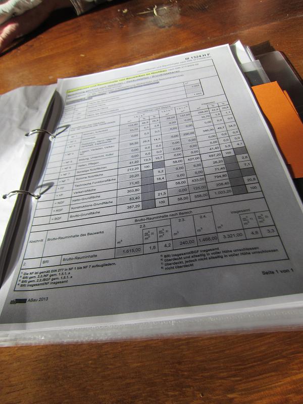 Grundflächen und Rauminhalte von Flächen im Hochbau nach DIN 277/2005-02 ... getrennt nach Gebäuden / Gebäudeteilen / Grundrissebenen Nutzflächen (NF)... u.a. Bildung, Unterricht, Kultur: 0,00 Quadratmeter, Heilen/Pflegen: 0,00 Quadratmeter Summe Nutzfläche: 212 Quadratmeter Technische Funktionsfläche: 20,20 Quadratmeter / Verkehrsfläche: 71,40 Quadratmeter Netto-Grundfläche: 303,80 Quadratmeter Konstruktions-Grundfläche: 83,40 Quadratmeter Brutto-Grundfläche: 387,20 Quadratmeter Bruttorauminhalte (BRI): 1.615,00 Kubikmeter (m³) |
