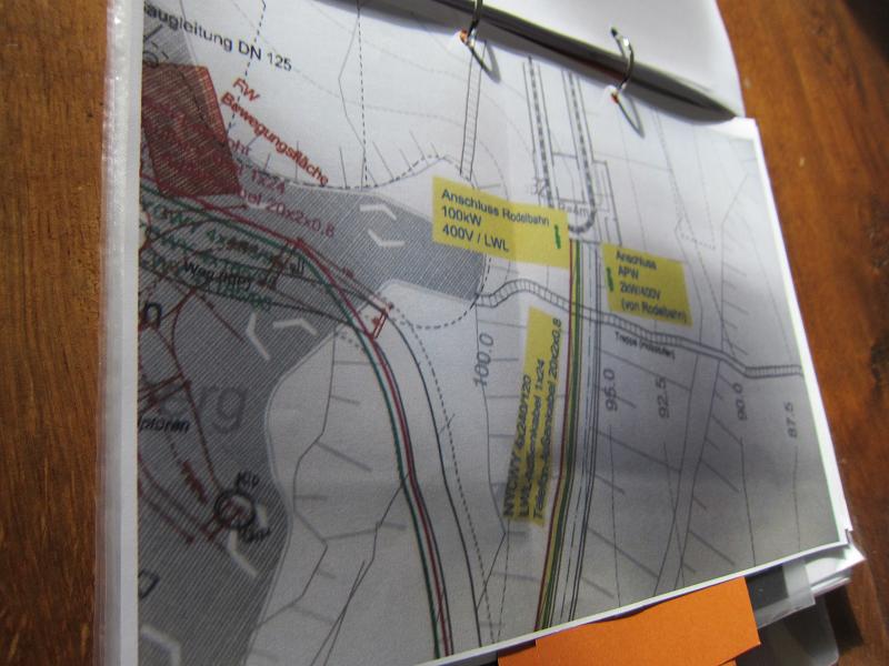 Sommerrodelbahn neben Seilbahnstation auf dem Kienberg - Strom- und Telefonversorgung Feuerwehr-Bewegungsfläche Anschluss Rodelbahn 100 kW, 400 V / LWL Anschluss APW 2kW / 400 V (von Rodelbahn) Treppe Kienberg |