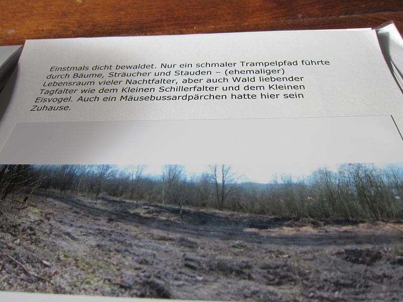 Der Kienberg - einstmals dicht bewaldet. Nur ein schmaler Trampelpfad führte durch Bäume, Sträucher und Stauden - (ehemaliger) Lebensraum vieler Nachtfalter, aber auch Wald liebender Tagfalter wie dem Kleinen Schillerfalter [Apatura ilia] und dem Kleinen Eisvogel [Limenitis camilla]. Auch ein Mäusebussard-Pärchen hatte hier sein Zuhause. |