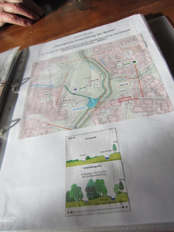 Protokoll zur Umweltbaubegleitung Kienberg, Seite 1 IGA Berlin 2017, Dienstag, 11.11.2014 Teilnehmer: Frau Heine, Herr Seelig (OB), Herr Conradi, Herr Geskes (G + H), Herr Sprozecki (BA M-H [Bezirksamt Marzahn-Hellersdorf], Herr Scharon (Gutachter Avifauna [NABU Berlin], Herr Braatz (UBB) Bauabschnitt: Kienberg (10.) und Kienbergterrassen (11.) Kienbergterrassen: Begangen wurde die gesamte Fläche, auf der die Entnahme und Pflege von Gehölzen geplant ist, wobei Frau Heine erläutert, dass die Gehölzentnahme zweistufig erfolgt. Die verbliebenen Baumbestände und die Planung/Gartenbilder von G-H [Geskes...] werden daraufhin aufeinander abgestimmt, bevor die zweite Stufe der selektiven Entnahme von weiteren Gehölzen, soweit notwendig, erfolgt. Kienberg: Begangen wurde der Verlauf der temporären Baustraße unter Einbeziehung der wegbegleitenden geplanten Saumflora des Kienberg-Waldes bis auf die Kienberg-Kuppe. Erhaltenswerte, heimische Laubbäume: Auf noch im Fällantrag enthaltene erhaltenswerte Laubbäume wie Birken, Ulmen, Eichen und Feldahorne weist die UBB hin. Die vorhandenen heimischen Baumarten sollen laut eines Zieles des Pflege- und Entwicklungsplanes erhalten, gepflegt und gegebenenfalls freigestellt werden, um ihre Entwicklung zu fördern. Während der vorherigen Begehung wurde auch die Idee der "Baumgalerie" geboren, wobei unter dem Gesichtspunkt der von IGA-Machern stark betonten Umweltbildung Baumarten entlang des Hauptweges auf den Kienberg erläutert werden. Mit einem Flatterband hatte Herr Braatz bereits dazu ausgewählte Laubbäume markiert, was jedoch keinen Bestand hatte. |