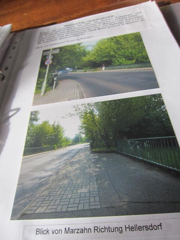 Wuhletal-Querungen Oberes Bild: Wanderweg über Eisenacher Straße über die Wuhlen. Fußgänger und Radfahrer müssen sich einen schmalen Weg (circa 1 Meter breit) teilen. Er verbindet zwei große Wohngebieten in Marzahn und Hellersdorf. Eine Verbreiterung des Geh- und Radweges auf 2 bis 2,5 Meter wurde möglich, und die bewilligten GRW-Mittel sinnvoll eingesetzt, da die Anwohner davon profitieren. Blick von Hellersdorf Richtung Marzahn Unteres Bild: Blick von Marzahn Richtung Hellersdorf |