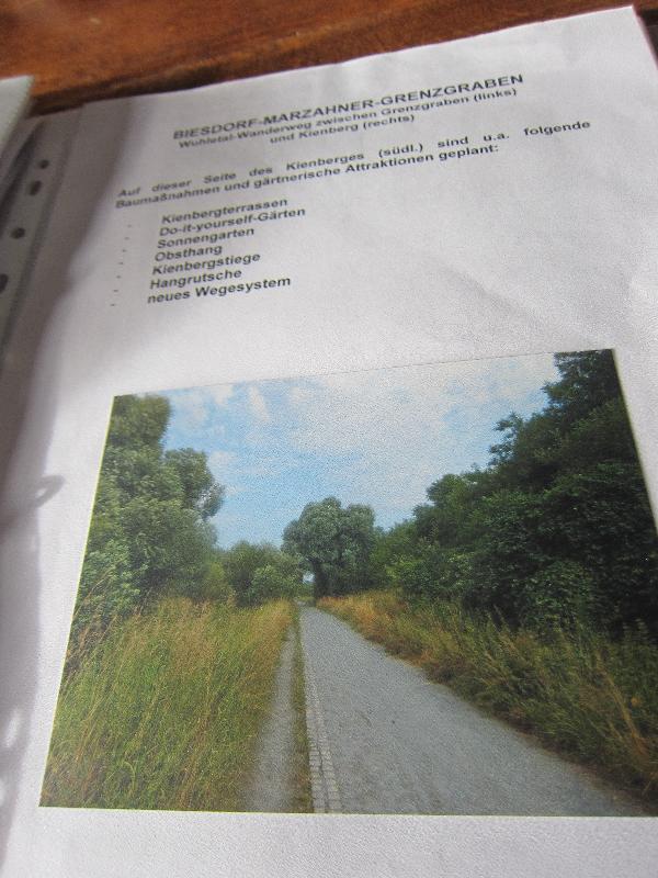 Biesdorf-Marzahner-Grenzgraben - Wuhletal-Wanderweg zwischen Grengraben (links) und Kienberg (rechts) Auf dieser Seite des Kienbergs (südlich) sind u.a. folgende Baumaßnahmen und gärtnerische Attraktionen geplant: