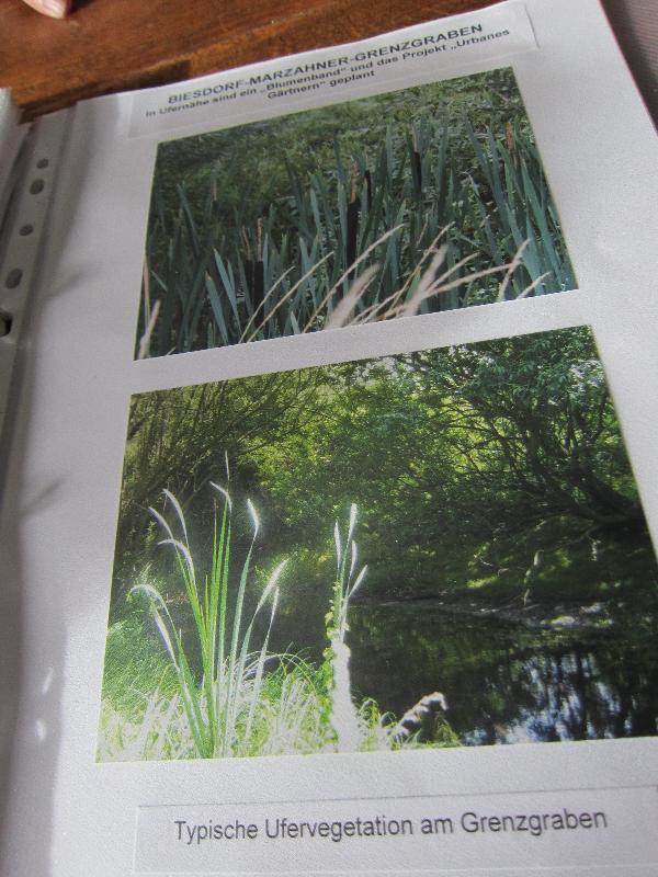 Biesdorf-Marzahner-Grenzgraben Oberes Bild: In Ufernähe sind ein "Blumenband" und das Projekt "Urbanes Gärtnern" geplant Unteres Bild: Typische Ufervegetation am Grenzgraben |