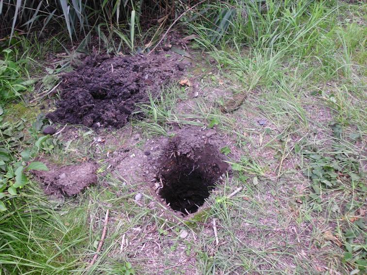 17.8.2015 Ungesicherte Löcher für den IGA Berlin 2017-Zaun am Schilfgürtel |
