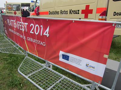 Der Rummel, genannt Plattenfest 2014 wird u.a. aus EFRE-Mitteln finanziert. EFRE: Europäischer Fonds für regionale Entwicklung. Die Europäische Union sieht darin eine Investition in die Zukunft. - EFRE-Mittel, eine Chance für Europa! Wo ist hier die Chance für Europa und die Investition in die Zukunft? Suche ich sie vergeblich? Werden hier öffentliche Gelder von öffentlicher Hand veruntreut? |