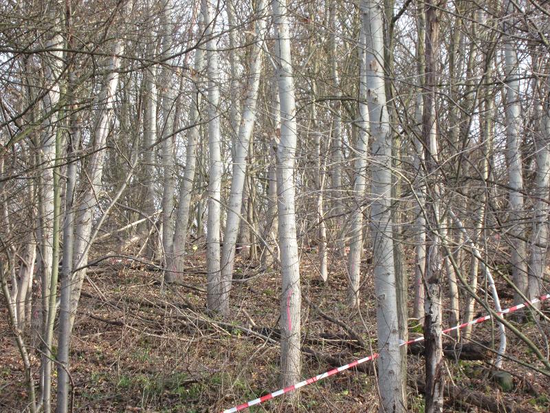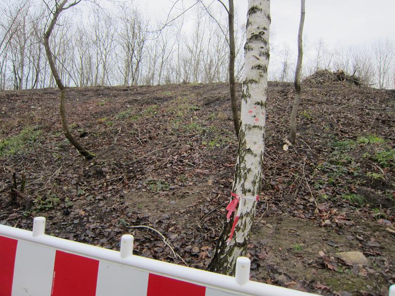 Heimische Bäume wie die Birke sollen erhalten werden. Dies gilt aber nicht für diese Birke; sie ist mit roten Punkten gekennzeichnet. Die Holzgier ist stärker als die Vernunft. Oder nicht? |