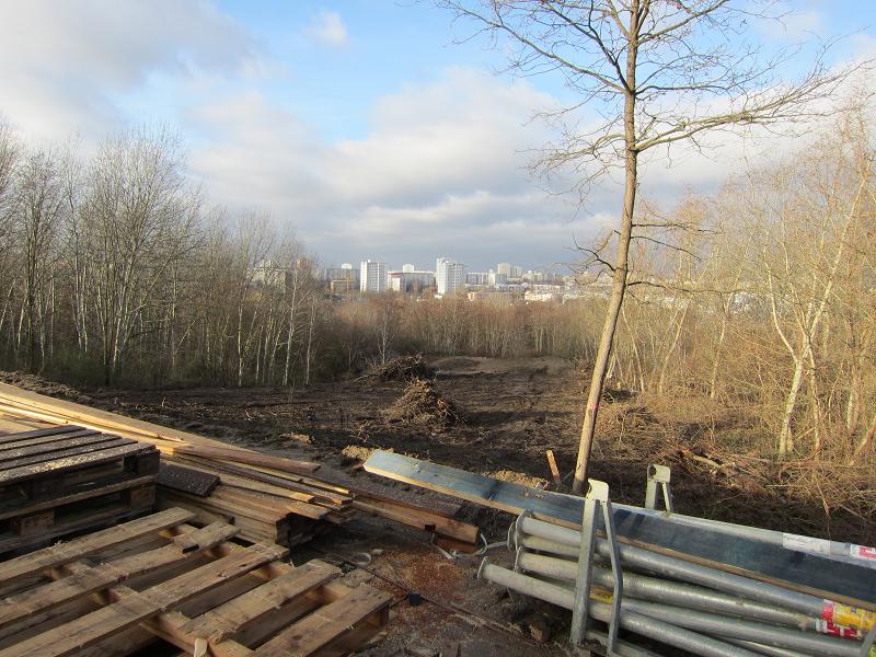 Schöne Aussichten! Im Hintergrund Hochhäuser, die man bis zu den Kahlschlagzeiten am Kienberg so nicht sehen konnte. |