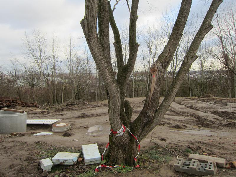 Soll das die Anlage einer Streuobstwiese sein? Ein alter Obstbaum hat Gnade erhalten. |