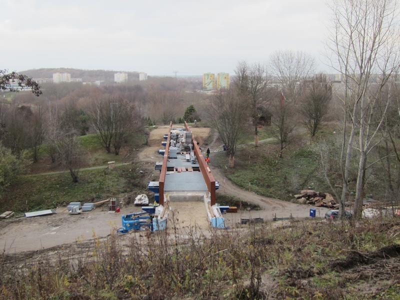 Blick auf die Tälchenbrücke vom Kienberg in die Gärten der Welt |