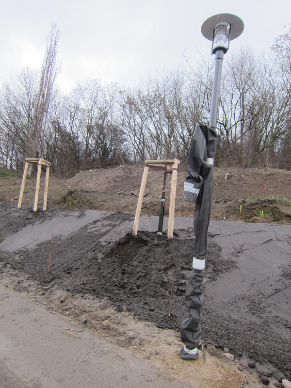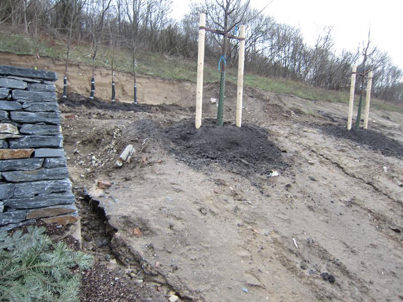 Nachdem die gut angewachsenen schönen alten Obstbäume gerodet wurden, wurde für die neu gepflanzten Obstbäume wurde Mutterboden eingekauft. |