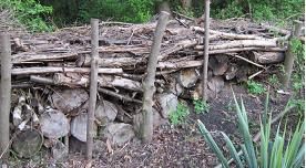 ![]() Mitnichten! Würde das nicht den Ordnungssinn von ewig Gestrigen stören, die an alten Zöpfen festhalten und massive Umweltprobleme ignorieren? Das Totholz wird in einer Benjeshecke aufgeschichtet, die wie ein Zaun als Begrenzung für einen 1 ha großen Abenteurspielplatz für Kinder dienen soll. (Hier wird die Mindestgröße gerade erreicht und eingehalten, um öffentliche Fördergelder abgreifen zu können). |