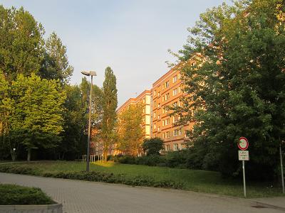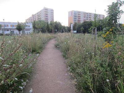 Ich tauche dann in einen sehr grünen Stadtbezirk ein, wo sechsstöckige Hochhäuser klein und niedlich wirken. Etwa 300.000 Einwohner leben hier, nicht besonders zahlungskräftig und in der Sozialstatistik eher ein Schlusslicht. Widerstand gegen große Pläne, die nachteilig für die Anwohner sind, ist hier kaum zu erwarten. Deshalb war es für die IGA 2017 Berlin-Vertreter umso überraschender, dass sich hier - ausgerechnet hier! - eine Bürgerinitiative gebildet hat, die Widerstand gegen die IGA-Pläne zur Einzäunung und Naturzerstörung ihres Naherholungsgebietes Kienberg-Wuhletal leistet.