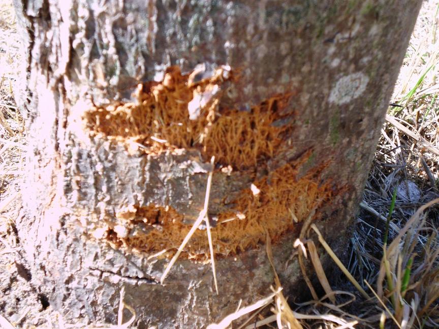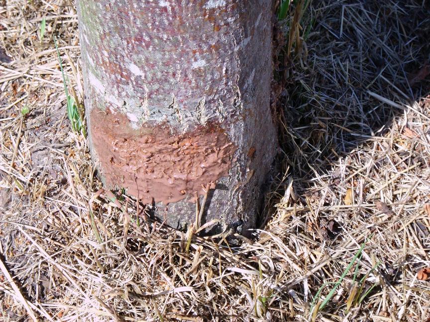 Jedenfalls hatte Herr T. veranlasst, dass jemand die Bäume "verarzten" sollte. Einige wenige wurden mit Baumwachs bearbeitet, aber nicht alle.