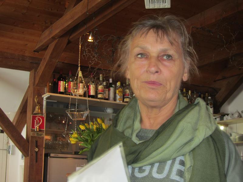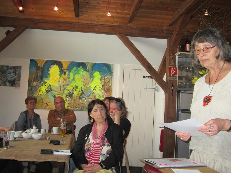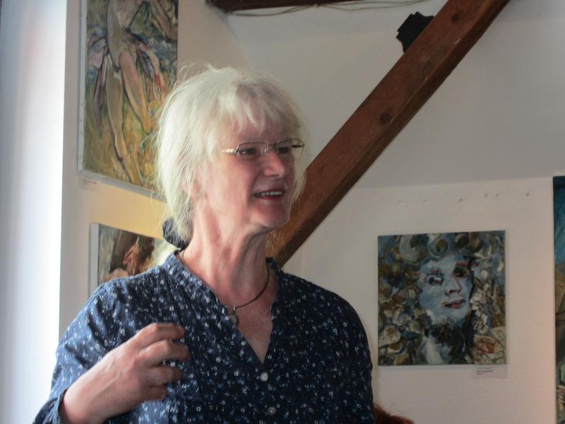 Christel Bachmann führt ihre Gäste in die Ausstellung ein |