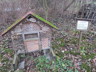 Insektenhotel mit Erklaerung und Danksagung an Erbauer |
