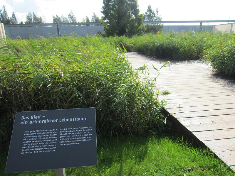 Internationale Gartenschau - igs 2013 Hamburg / Hier werden die Reste der weitestgehendst vernichteten, urspruenglichen Natur erklaert: Das Ried - ein artenreicher Lebensraum Bedeuten und rechtfertigen solche Hinweise das, was die IGA Berlin 2017 mit dem artenreichen Kienberg-Wuhletal-Gebiet propagiert: Im Namen der Natur zu agieren? |