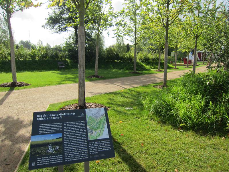 Internationale Gartenschau - igs 2013 Hamburg / Bei dieser abschreckenden Gartengestaltung erwarte ich keine erfundenen Gaerten und Pflanzenphantasien - Aber Schilder verraten, was ich sehen SOLL und klären mich über die sparsame Ästhethik auf... |