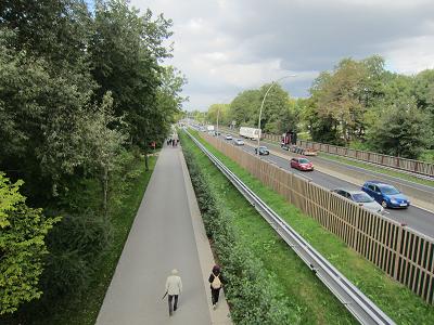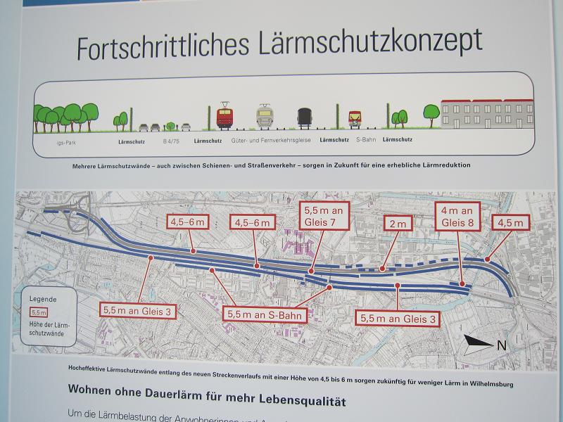 Internationale Gartenschau - igs 2013 Hamburg / Als fortschrittlich gepriesenes Laermschutzkonzept - ohne Bäume! Also mit viel Staub, Gestank und Dreck - bei einer Straßenfrequentierung von 50.000 Autos pro Tag. Die durchschnittliche Lärmbelastung sinkt bei der Lärmschutzwand um 6 Dezibel. Die Lärmbelastung liegt tagsüber bei über 75 Dezibel. Ab 60 Dezibel wird Lärm als belästigend empfunden. Dass das gesundheitsschädlich ist, ist wohl den meisten klar. Warum wird dieses Konzept als fortschrittlich gepriesen, wo doch die durchschnittliche Lärmbelastung auf 69 Dezibel sinkt und damit immer noch weit über den 60 Dezibel als Schwellenwert liegt. Warum werden KEINE BÄUME auf einer Gartenausstellung mit einbezogen? |