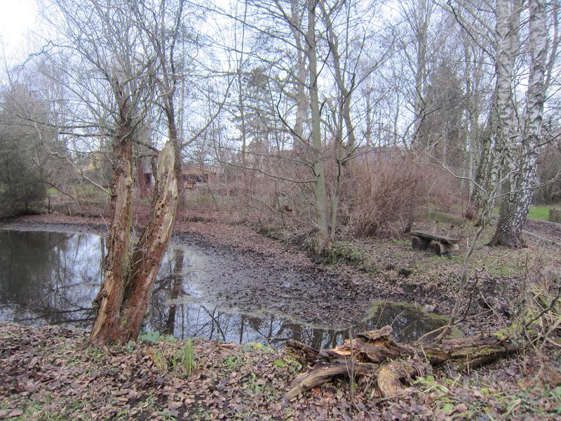 Teich mit stehendem und liegendem Totholz - aus ökologischer Sicht besonders wertvoll |