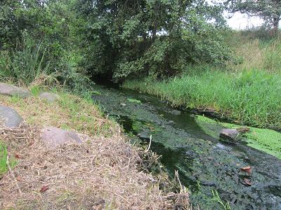 Vielleicht erkennen Sie die Wuhle auch gar nicht wieder. Noch wächst hier der Große Flussampfer (Rumex hydrolapathum), Wirtspflanze des Schmetterlings Großer Feuerfalter (Lycaena dispar), einer FFH-Art, für deren Erhalt Europa eine besondere Verantwortung hat. An dieser Pflanze entwickeln sich die Schmetterlingsraupen - sie fressen nichts anderes. Die Puppen überwintern hier, wo sie im Frühjahr schlüpfen und als prächtige Falter fliegen. - In diesem Frühjahr [2014] wurde ihre Zahl stark dezimiert; denn die öffentliche Hand ließ kurz vor deren Schlupf die Uferseiten mit den Sauerampferbeständen abmähen. Im August 2014 wurde dann Tabula rasa gemacht, s. Verunreinigung der Wuhle in Berlin-Hellersdorf]